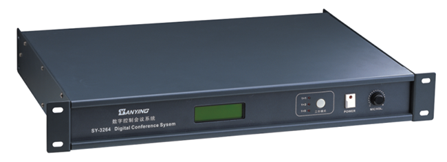系統(tǒng)主要由sy-3264主控機、主席單元和代表單元、三通、四芯線纜和電源適配器組成。主控機采用四芯線纜通過手拉手的方式鏈接麥克風單元,為每一只麥克風提供電源、信令控制和發(fā)言管理。系統(tǒng)設有1+1排隊輪候摸式和先進先出兩種工作模式。